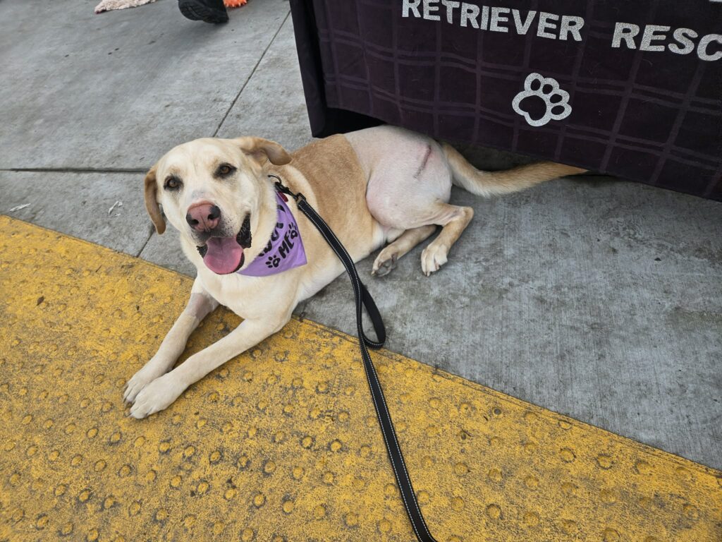 At about 5 years old and a solid 100 pounds, Riley is the perfect mix of maturity and playful spirit. He’s past the wild puppy stage but still has plenty of pep in his step! This sweet boy has a personality that’s equal parts playful and gentle. He loves his people and gets along with his doggy friends; there are no cats in the foster home. He’s got that classic Labrador charm — smart, affectionate, and always ready for the next adventure.